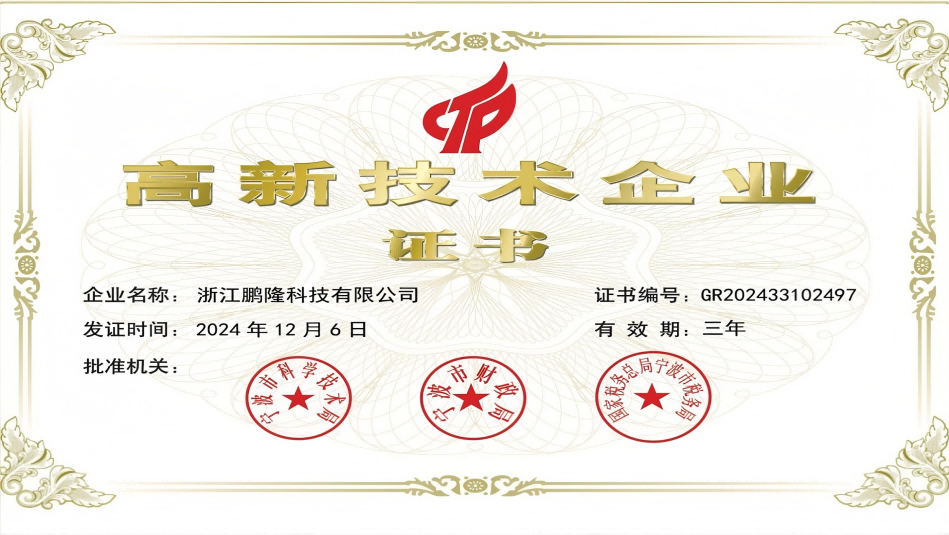 荣誉与资质:“国家高新技术企业、宁波市专精特新企业”