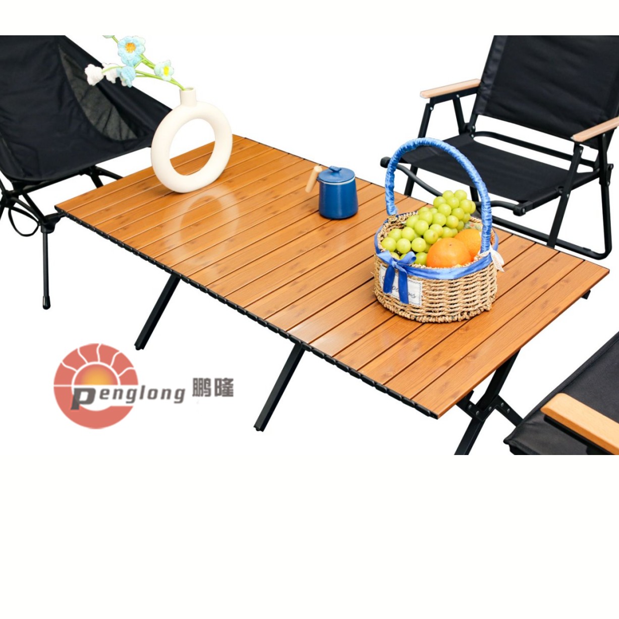 A camping table is a portable, collapsible surface designed for outdoor use during activities like camping, picnics, or hiking. It provides a stable platform for cooking, dining, or storing gear, enhancing comfort and convenience in the wild. The desktop can be rolled up, and the stent is foldable, it is easy to open and close, thus saving on time. Unlike regular tables, these are lightweight, easy to set up, and weather-resistant for durability.