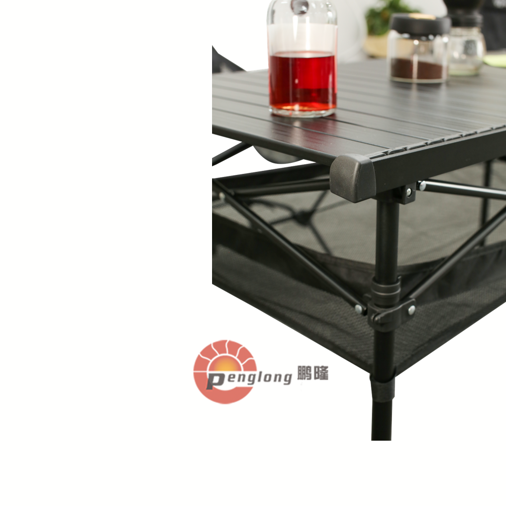 A camping table is a portable, collapsible surface designed for outdoor use during activities like camping, picnics, or hiking. It provides a stable platform for cooking, dining, or storing gear, enhancing comfort and convenience in the wild. The desktop can be rolled up, and the stent is foldable, it is easy to open and close, thus saving on time. Unlike regular tables, these are lightweight, easy to set up, and weather-resistant for durability.