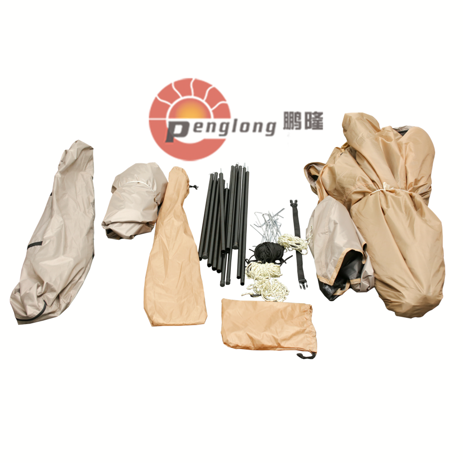 Included accessories: 20 ground stakes, 14 windproof ropes, 1 storage bag, 1 top cover, 1 canopy, 4 canopy poles